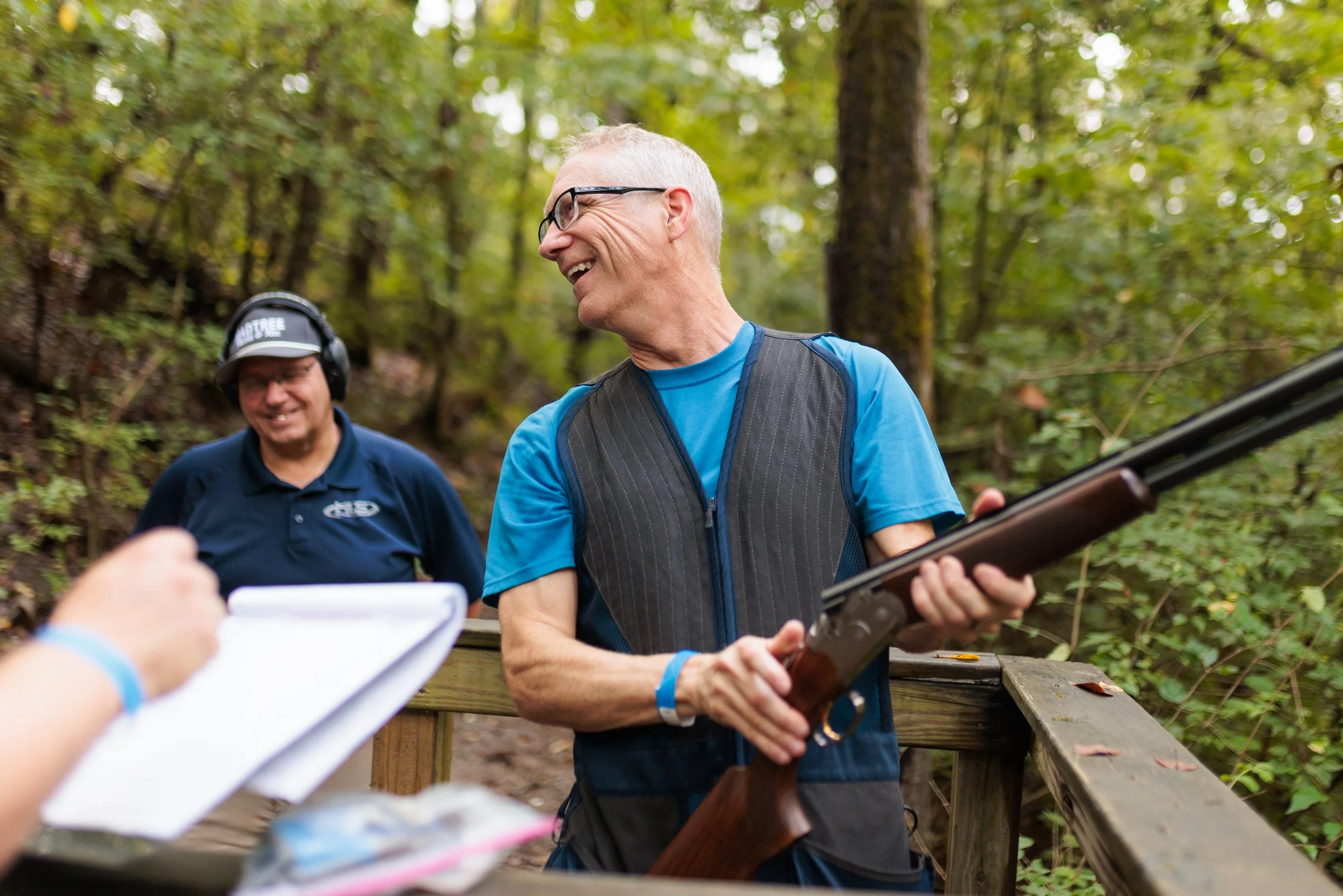 Everyone begins with a comprehensive safety briefing covering fundamental firearm safety rules. Eye and ear protection are provided. Sycamore Sporting Clays brings decades of experience hosting corporate events — and statistically clay shooting is safer than bowling or golf.